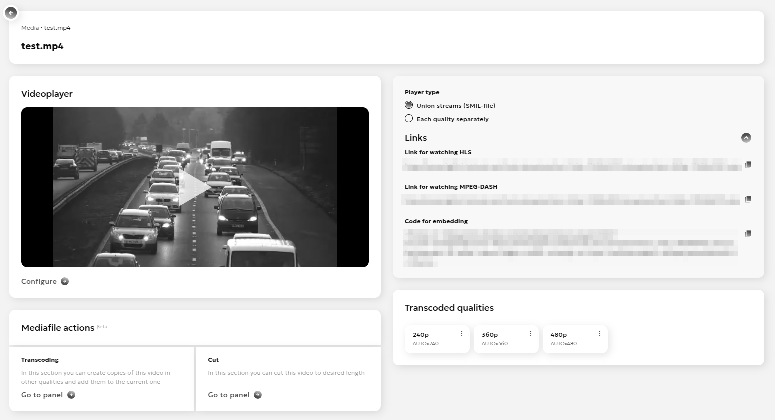 - After transcoding, the qualities will appear in the "Transcoded qualities" section